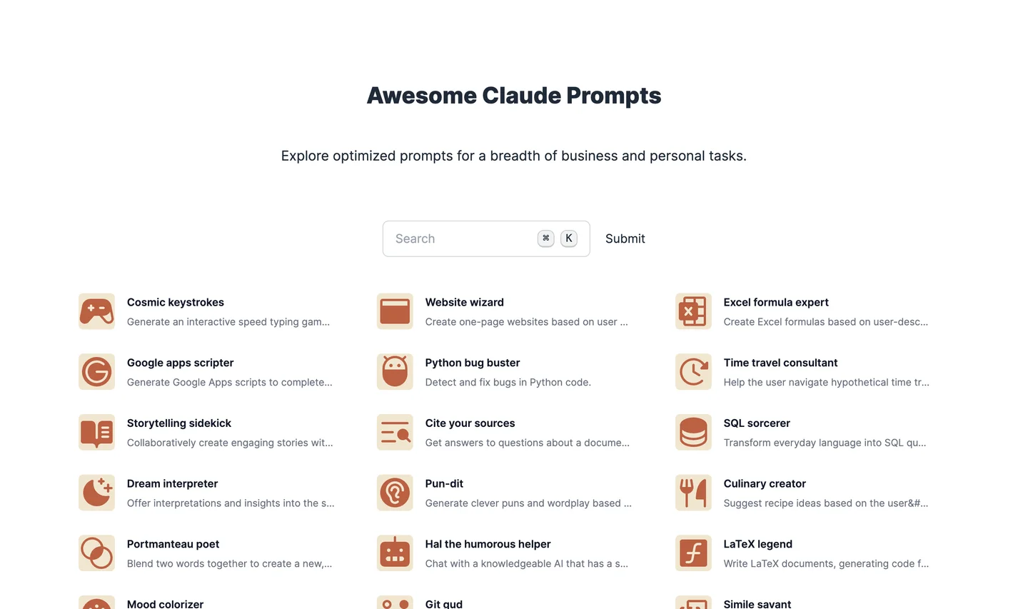 AwesomeClaudePrompts.com 提供了工具和预制提示,用于利用Claude Prompts与Claude等语言模型。 Claude Prompts是提供给生成式预训练变换器语言模型(如 GPT-3)的特定输入或指令,用于生成文本响应。这些提示为模型提供了一个起点或上下文,以生成连贯且与上下文相关的文本。它们的复杂程度各不相同,从简单的问题或陈述到精心设计的场景或任务,旨在引发特定类型的响应。Claude Prompts作为利用模型的语言生成能力的基础,可用于各种应用,包括文本完成、对话生成、创意写作等等。 根据平台的不同,获取Claude Prompts可能需要支付费用,定价通常基于使用量,例如 OpenAI 的 API,采用基于令牌的定价模型。 要创建您自己的Claude Prompts,需要为模型制定具体清晰的指令或上下文,将其输入到所选平台或工具中,然后根据模型的响应迭代地生成和完善文本输出。实验、评估和迭代对于优化提示的效果和利用模型进行多样化应用至关重要。 Claude通过序列预测生成响应,使用提供的提示以及其现有知识来预测下一个最有帮助的令牌。它基于给定的提示和先前的输出逐字符构建响应。 但是,Claude的理解和记忆受到其上下文窗口的限制,这意味着它只能考虑从当前对话点一定范围内的信息。除非在提示中明确提供,否则它无法回忆以前的对话,也无法访问外部链接或资源。 对于最大化Claude的性能,提示工程至关重要,包括有效地制定提示、避免常见陷阱和尝试不同的技术。各种目的的预制提示都可以在多样化的集合中找到,从工作相关任务到创意写作和角色扮演场景都有。虽然Claude擅长多种语言,但 Awesome Claude Prompts.com 目前专注于英语提示,以实现广泛的可访问性和一致性。此外,除非明确包含在当前提示中,否则Claude无法与外部内容交互或记住过去的对话。