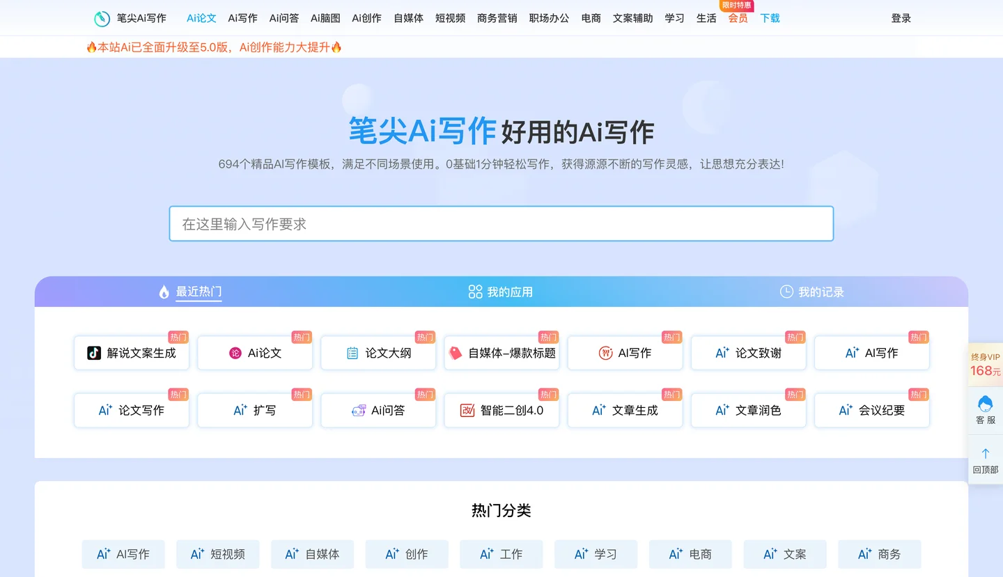 笔尖Ai适合文案创作者、短视频脚本写作、电商商品文案写作、营销软文写作、论文创作和日程办公文案写作系统旨在提供文案和灵感参考,请勿用于作弊和违规违法等行为。 1、工作总结 面对年中述职、年度总结、活动汇报或项目回顾,如果感到困扰,那就让笔尖Ai为你描绘完美总结。 2、公文写作 从新闻稿到宣传稿,从个人小结到工作报告,任何体制内公文写作都能在笔尖Ai的智能辅助下,轻松提升写作效率 3、营销文案 无论你需要小红书还是知乎,或者抖音直播脚本,笔尖Ai都能让你在各大主流平台上的营销文案写作变得轻松无忧。 4、论文写作 我们提供论文开题报告生成、格式化论文、文献综述生成等服务,让你的论文撰写过程变得更高效 5、计划方案 商业计划书、OKR制定、活动方案、考核计划、教学计划,一切计划制定让笔尖Ai来帮你,无需再头疼 6、发言讲话 无论是发言稿、主持词、演讲稿,还是公开演讲,我们的专家都能帮你打造完美逐字稿。