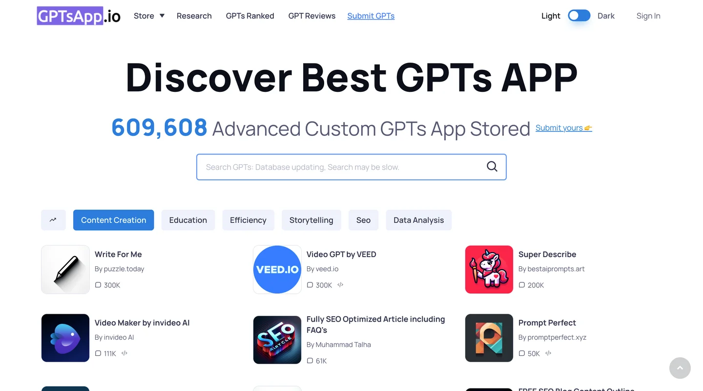 GPTsApp.io 是一个专为那些寻求探索和利用生成预训练转换器(GPTs)能力的用户设计的革命性平台,特别关注以 ChatGPT 为动力的应用程序。 作为“最佳 GPTs APP”,GPTsApp.io 为用户提供了一个独特的入口,以发现和整合先进的 GPT 应用程序到他们的日常生活中。网站 GPTsApp.io 作为探索定制 ChatGPT 应用程序广阔世界的中心枢纽,对于个人和企业来说是不可或缺的资源。 在 GPTsApp.io 发现最佳 GPT 应用 GPTsApp.io 的一个主要特点是其用户友好的界面,使用户能够轻松浏览各种 GPT 应用程序。平台的口号“发现最佳 GPT 应用”完美地概括了其向用户展示顶级 GPT 应用程序的使命,每个应用程序都经过精心策划,以确保质量和效率。 GPTs 商店:ChatGPT 应用程序的宝库 GPTsApp.io 的核心是 GPTs 商店 (GPTsApp.io/store)。这个数字市场是用户可以找到“GPTsApp 商店上最佳 GPTs”的地方。无论您是在寻找一个 GPT 应用程序以提高您的生产力、简化您的工作流程,还是简单地探索 AI 的能力,GPTs 商店都为每个人提供了一站式目的地。“在 GPTsApp 商店发现最佳 GPTs 和 ChatGPT(LLM)代理”,从而增强您的 AI 助手能力。 GPTsApp.io 的特点 广泛的应用范围:该平台拥有多种 GPT 应用程序,满足不同需求和行业。从商业分析到创意写作,GPTsApp.io 有利用 AI 力量提供创新解决方案的应用程序。 用户友好界面:GPTsApp.io 以用户体验为中心设计,确保易于导航,使发现和获取 GPT 应用程序变得无缝而直观。 精选质量:GPTsApp.io 上的每个应用程序都经过严格的审查过程,确保只有最佳、最可靠、最高效的 GPT 应用程序可供用户使用。 定制选项:考虑到每个用户的独特需求,GPTsApp.io 上的许多 GPT 应用程序提供定制选项,允许用户根据他们的具体要求定制应用程序。 定期更新和支持:GPTsApp.io 及其应用程序定期更新,以纳入 AI 和 ChatGPT 的最新进展,确保用户始终能够使用最先进的技术。 GPTsApp.io 的优势 提高生产力:借助旨在自动化和简化任务的应用程序,GPTsApp.io 可显著提高生产力,使用户和企业能够专注于核心活动。 创新解决方案:使用先进的 GPT 技术使用户能够找到复杂问题的创造性和高效的解决方案,无论是在数据分析、内容创建还是客户服务方面。 时间和成本效率:通过自动化日常任务和提供快速解决方案,GPTsApp.io 帮助节省时间并降低个人和企业的运营成本。 获取专业知识:该平台提供由 AI 领域专家开发的应用程序,为用户提供了由广泛知识和经验支持的高质量工具。 竞争优势:在快速发展的数字化环境中,GPTsApp.io 通过为用户提供最新的 AI 工具和应用程序,给予他们竞争优势。 GPTsApp.io 的使用案例 商业分析:公司可以利用 GPT 驱动的应用进行深入的数据分析,获得推动战略决策的见解。 内容创作:作家和营销人员可以使用 AI 辅助应用程序高效地生成高质量内容,增强他们的创作过程。 客户服务:GPT 应用程序可用于提供自动化但个性化的客户支持,提高客户体验和满意度。 教育和研究:学生和研究人员可以使用 GPT 工具进行信息收集、分析和总结,以帮助他们的学术追求。 个人生产力:个人可以使用 GPT 应用程序执行各种任务,包括日程管理、自动回复和个人学习。 结论 GPTsApp.io 作为 AI 和 GPT 应用程序领域的关键资源而崭露头角。它是一个平台,在这里,“在 GPTsApp.io 发现 GPTs 应用程序,这是您定制 ChatGPT 应用程序的终极目的地。”凭借其多样化的应用范围、用户友好的界面和对质量的承诺,GPTsApp.io 作为一个向那些希望利用 AI 力量来增强个人和职业能力的用户开放的可能性世界的灯塔。无论您是寻求优化运营的企业还是对 AI 潜力感到好奇的个人,GPTsApp.io 都提供了一个通往无限可能世界的入口。